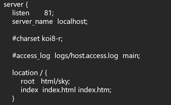 如果你的 80 端口被占用,可以去修改 nginx. conf 下的端口,比如我就该为了 81,在启动服务器的时候进入的网站也要跟着你的端口号去修改